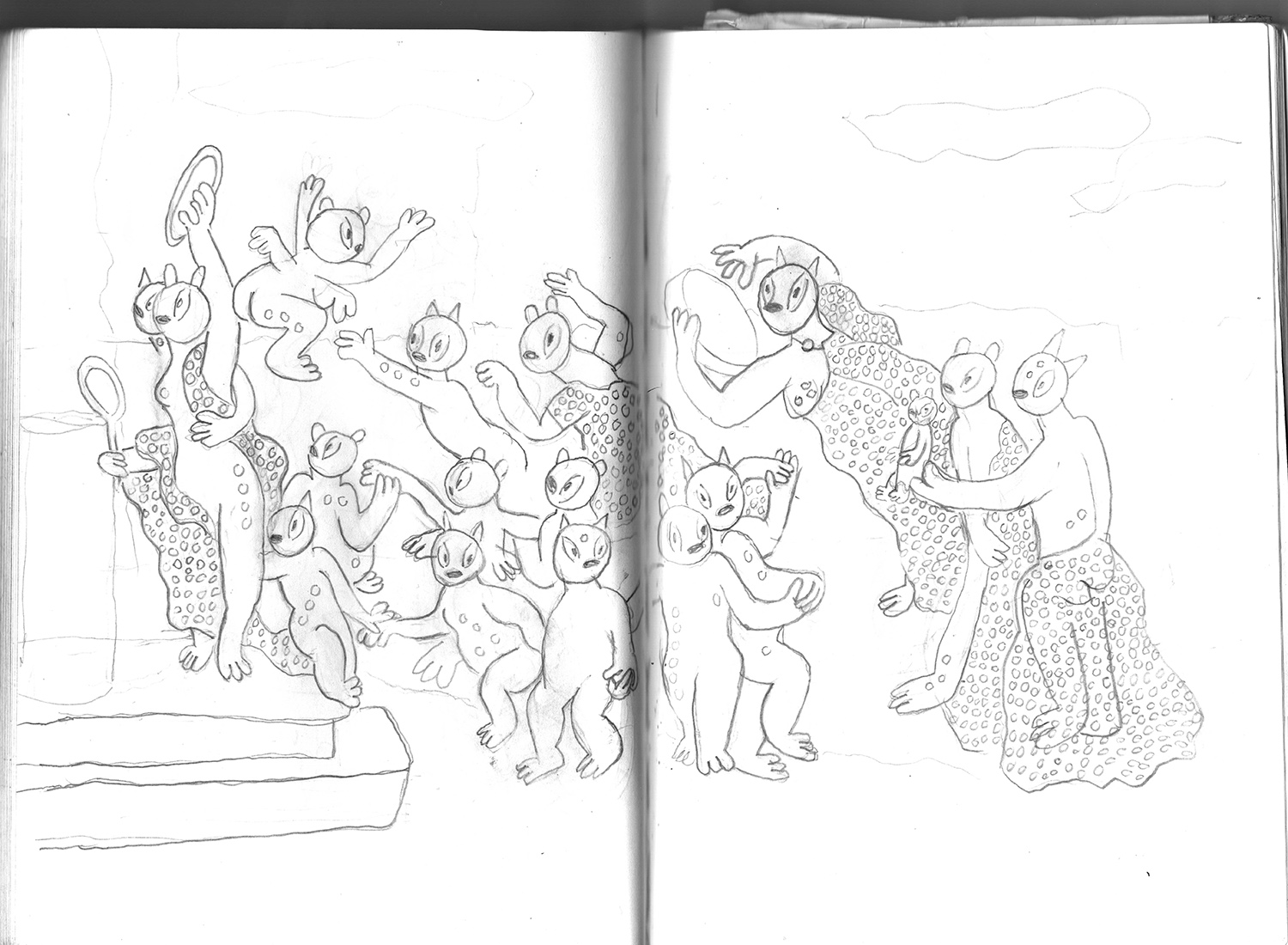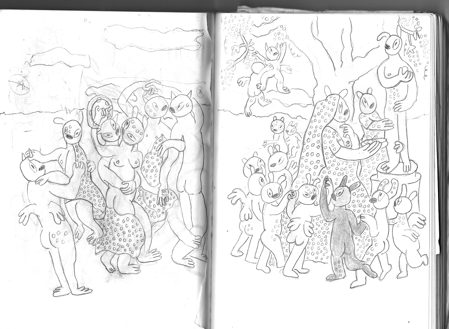 Precisamente cuando no pienso demasiado es cuando más me acerco a lo que quiero ver en el papel. Pongo el foco en conseguir algo expresionista que provoque una reacción inmediata, próxima a la comicidad y quizá desligada de connotación narrativa… Me centro más en los escenarios u objetos que me permitan componer de forma divertida y en los que los detalles sean numerosos pero suficientemente certeros. Ahora me acerco a la imagen como hacían Rubens y Brueghel, donde en un solo escenario se fragmentan diversas acciones, pero también me atrae la idea de explicar a través de la encadenación de cuadros de contenido, como Ware…